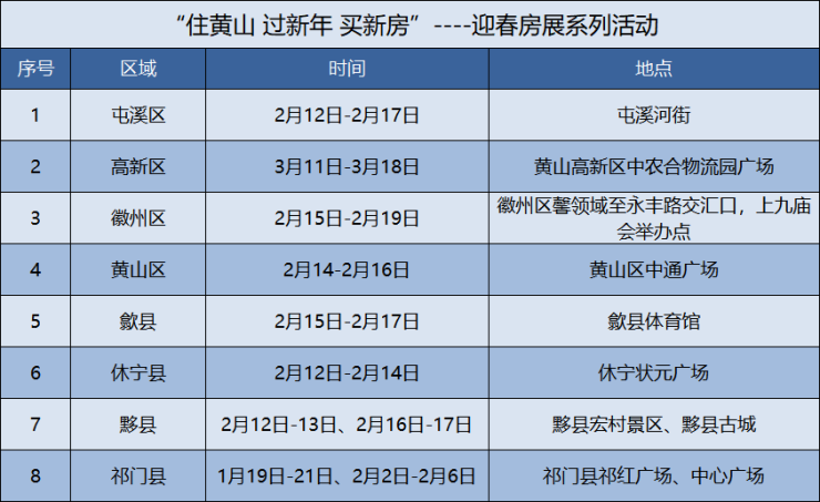 高新区 :活动时刻:3月11日-3月18日 ; 活动地址:黄山高新区中农合物流园广场